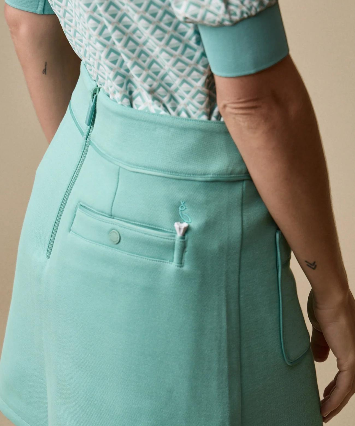 The Pocket Skort: Crafted from our signature Double Knit fabric, this skort offers both style and functionality on the course. Pair it with the Short Sleeve Polo for a chic and comfortable ensemble.