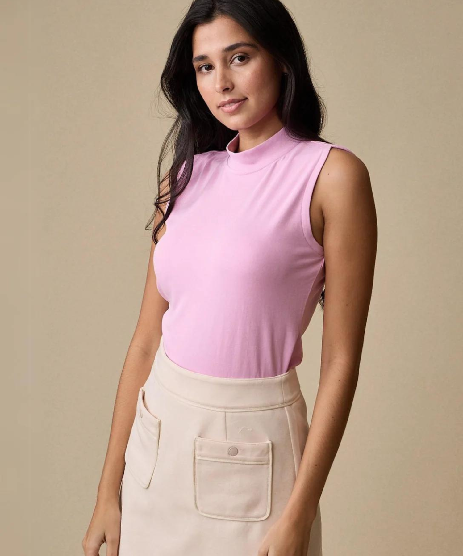 The Sleeveless Keyhole Top: Stay cool and stylish in our Sleeveless Keyhole Top, designed for effortless layering and maximum comfort. Pair it with the Kick Flare Pant for a polished summer look.