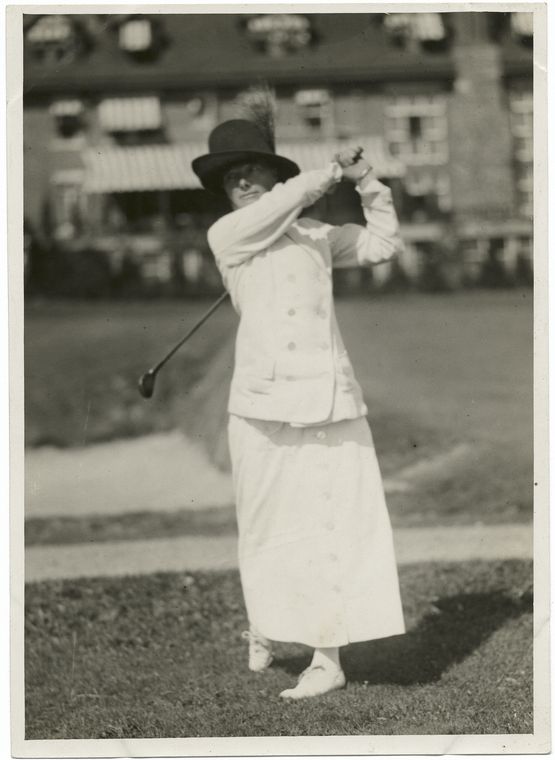 The 1920s marked a turning point in golf fashion. Restrictive corsets gave way to more forgiving undergarments. Women began wearing matching two-piece dresses with straight or pleated skirts, often complemented by cardigans or vests. However, hemlines remained below the knee, still limiting mobility on the course.